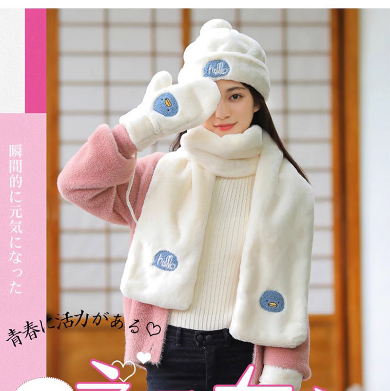 Japanese scarf Winter female cute girl cashmere warm thickened student gift hat gloves three-piece set box
