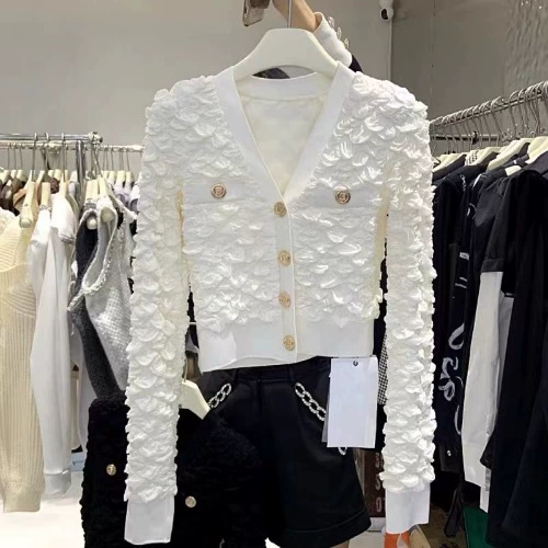 Xiaoxiangfeng autumn V-neck knitted cardigan metal buckle