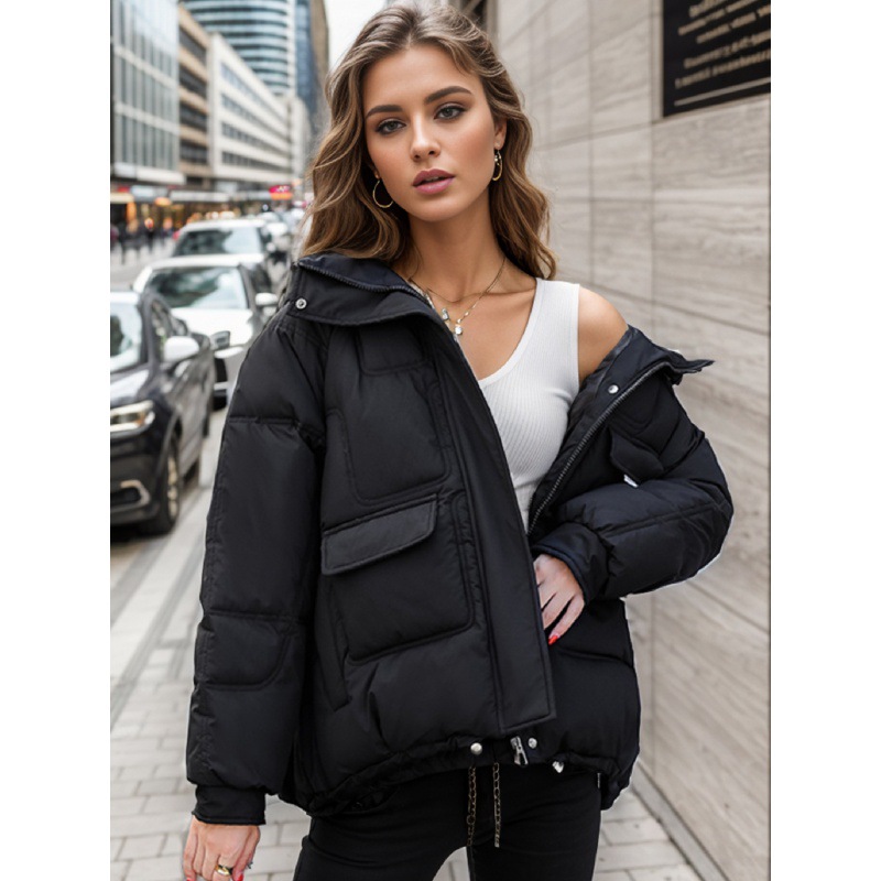2024 Hooded Down Cotton Clothes Women’s New Short Winter Korean Style plus size Thickened Multi-Pocket Cotton-Padded Jacket Coat Trendy