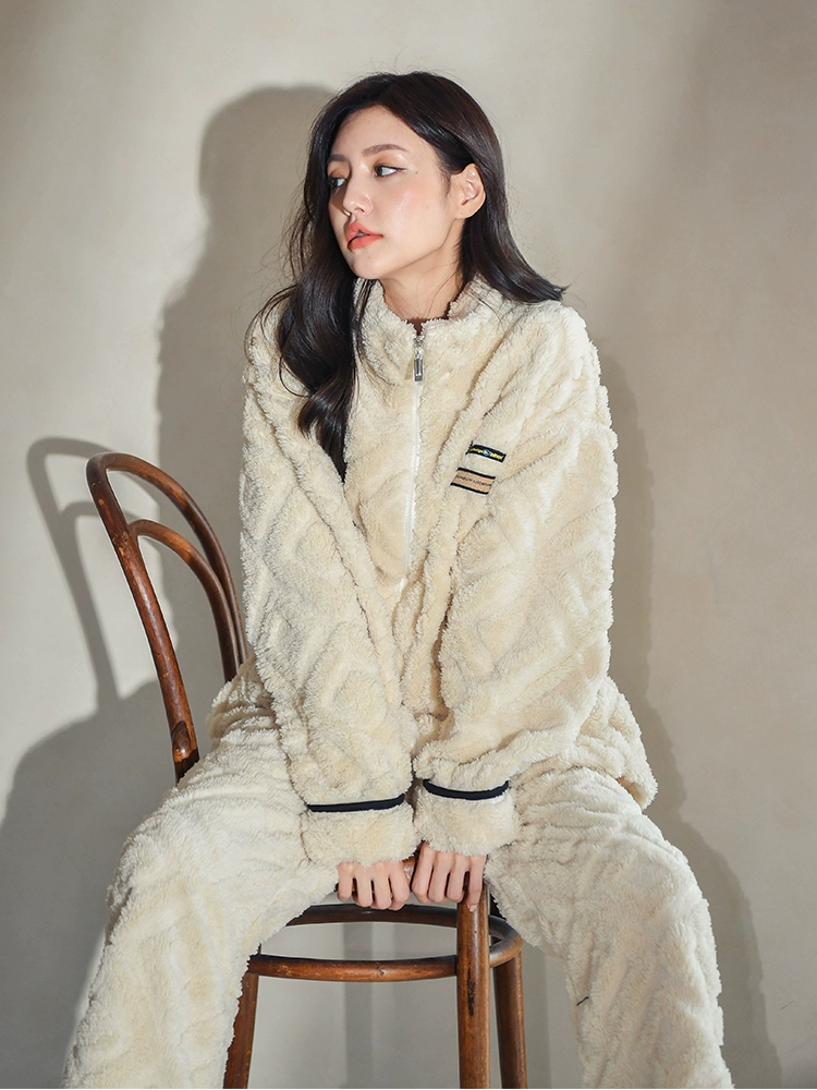 Zumashi Coral Velvet Pajamas Women’s Autumn and Winter Plus Velvet Thickened Home Clothes Spring and Autumn Can Be Weared Outside Suit Winter