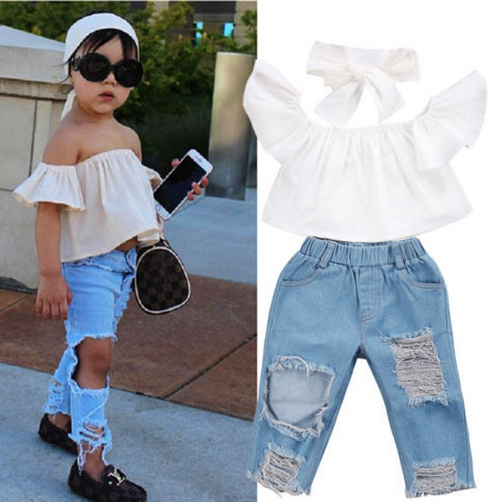 Summer European and American Children’s Girls’ Suit Solid Color Cotton Trousers Short-sleeved Three-piece Pants Suit Children’s Wear