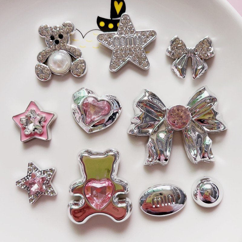 Electroplated silver point drill bear love bow five-pointed star diy handmade material mobile phone case hole shoes accessories