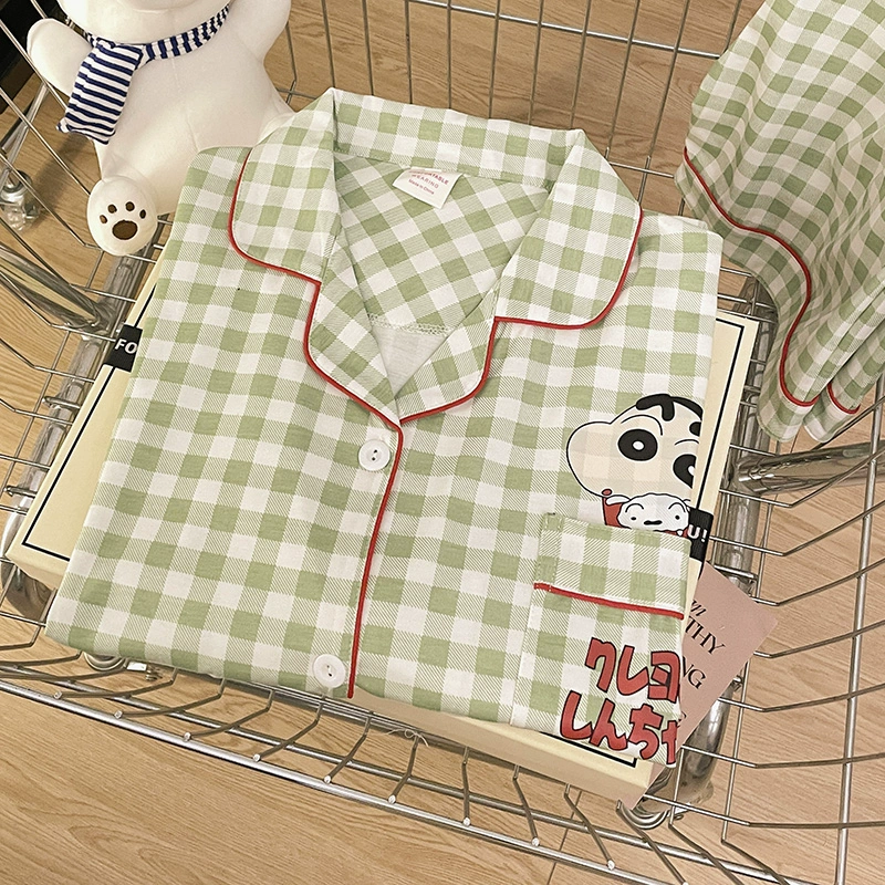 Crayon Shin-shirt pure cotton plaid women’s home clothes pajamas