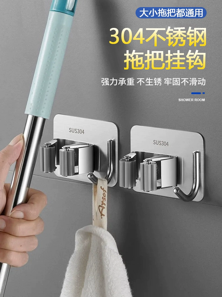 Mop -hook -free punch -free bathroom storage artifact wall hanging rack fixed strong sticky mop clip