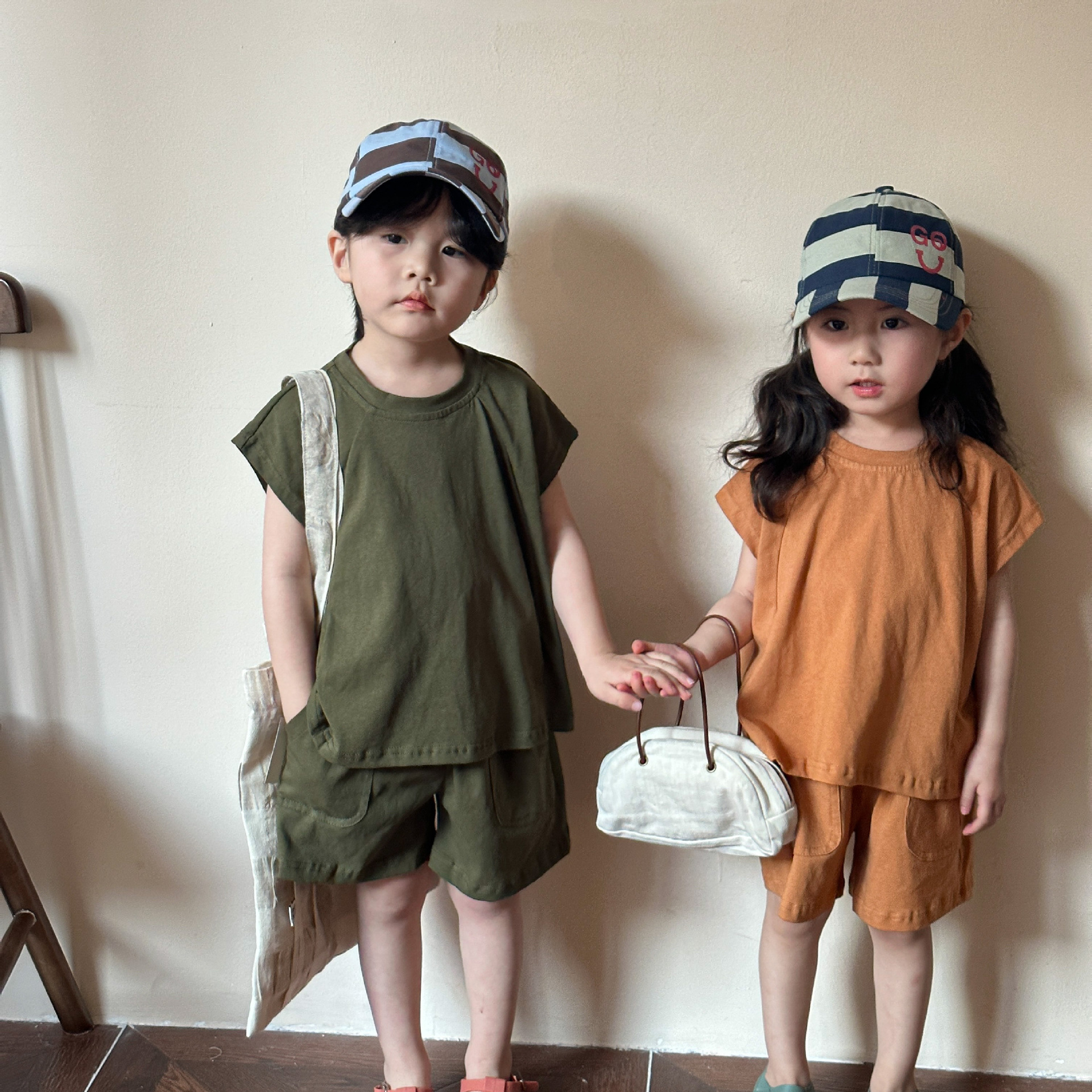 Children’s summer sports suit boys’ cotton loose clothes baby 2024 New girls’ casual vest summer clothes
