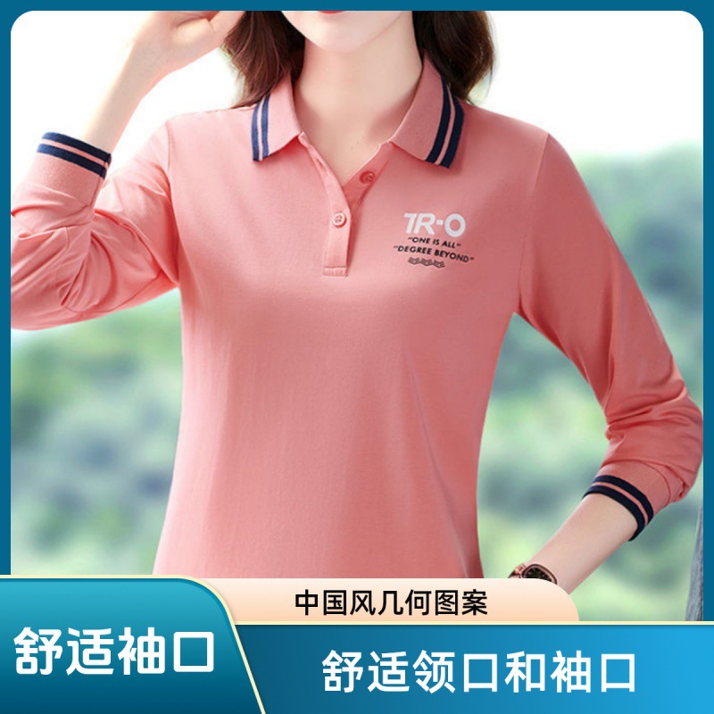 100% Good Quality Long Sleeve T-Shirt Women Polo Shirt plus size Loose Female Middle-aged Mother’s Casual Lar Top