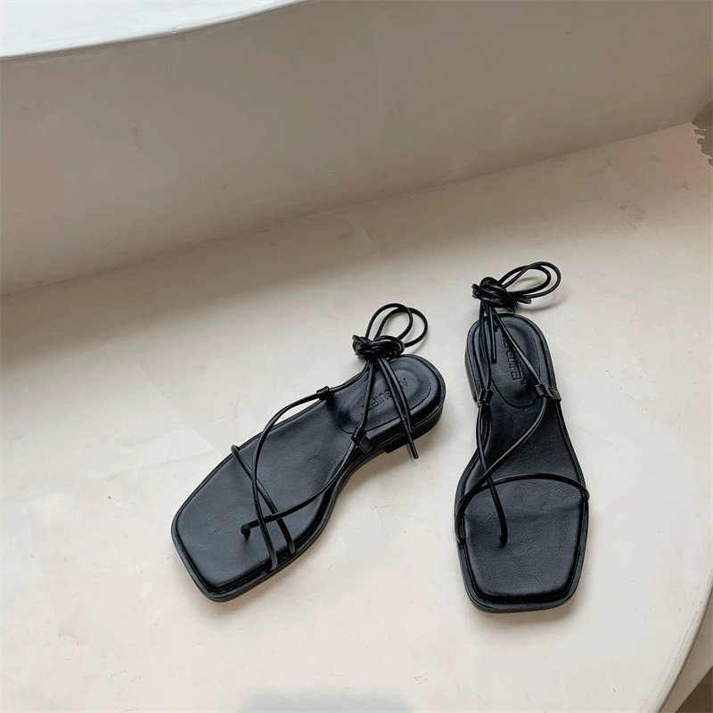 With skirt French style and cross -straps sandals 2024 summer new one word thin band beach Roman fashion shoes