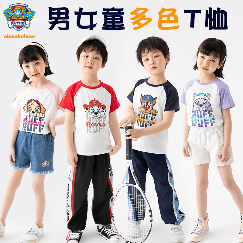 Children’s short-sleeved T-shirt crew neck Wang Wang Team children’s clothing live selling boys and girls cotton T-shirt brand children’s clothing spot wholesale