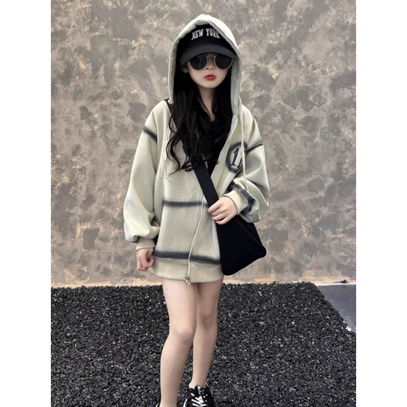 Girls’ spring coat fashionable 2024 New Korean style medium and big children’s casual spring and autumn top hooded cardigan