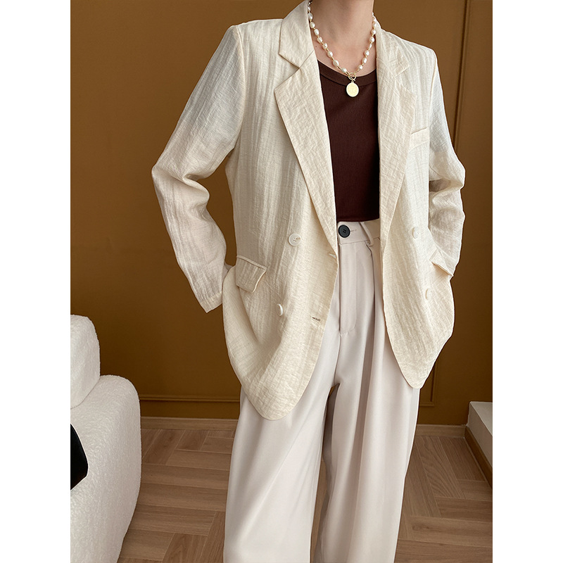 Sinan pleated texture French linen blended thin suit jacket 2024 early spring new SN5012