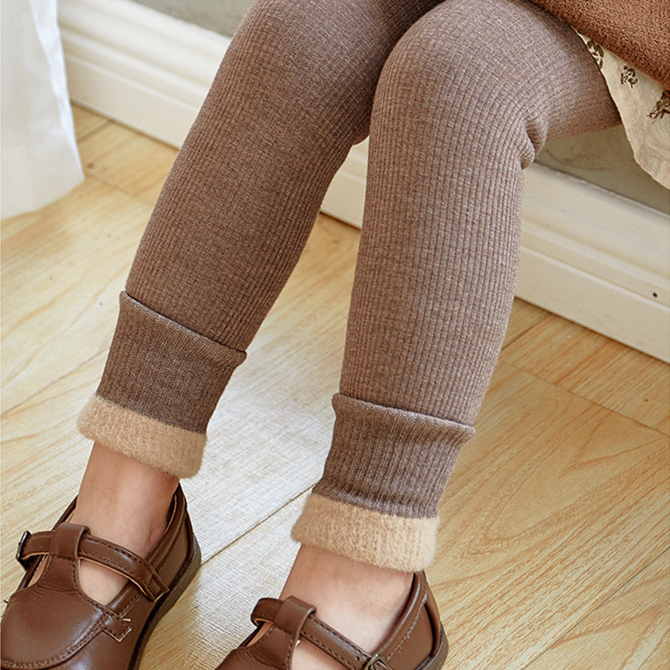 Girls’ Autumn and Winter Leggings fleece-lined Thickened Winter New One-piece Velvet Children’s Outfit Girls’ Warm Pants