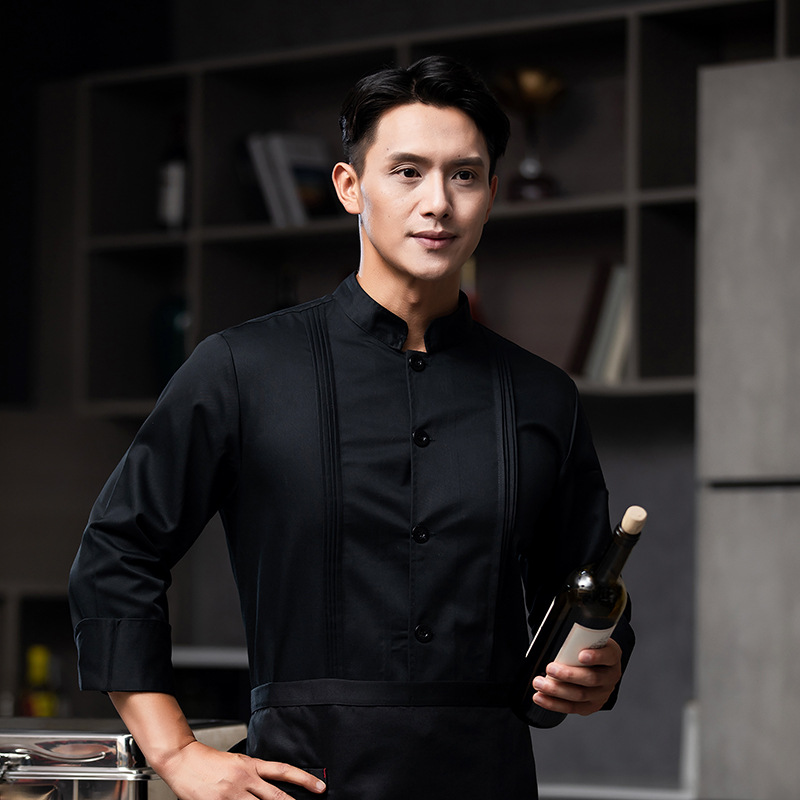 White Chef Work Clothes Men’s Short Sleeve Chinese Style Hotel Restaurant Catering Kitchen Baking Chef Clothes Long Sleeve