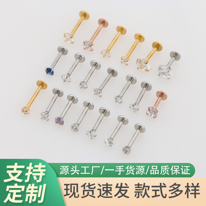 Cross-border hot selling European and American stainless steel puncture jewelry internal screw tongue nail lip nail multifunctional body puncture jewelry