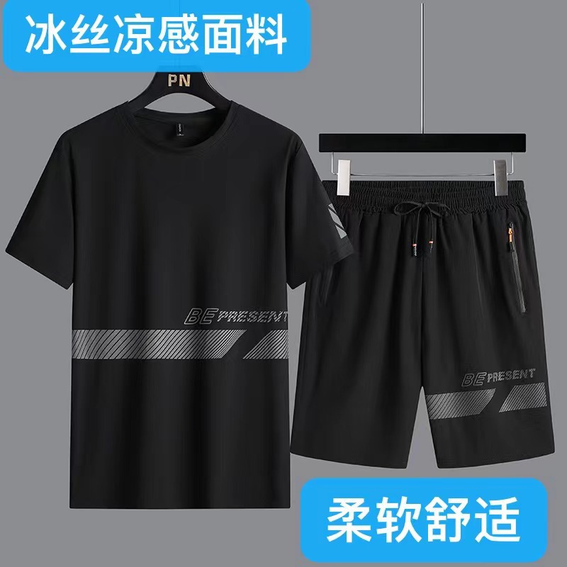 Casual suit Men’s Summer Thin Ice Silk Plus Large Size Men’s Short-sleeved T-shirt Sports Two-piece Set