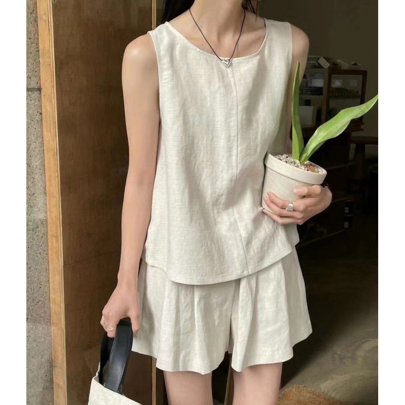 2024 Spring and Summer New Design Sense Slimming Simple Back Buckle Sling Sleeveless Vest Women’s Two-piece Set