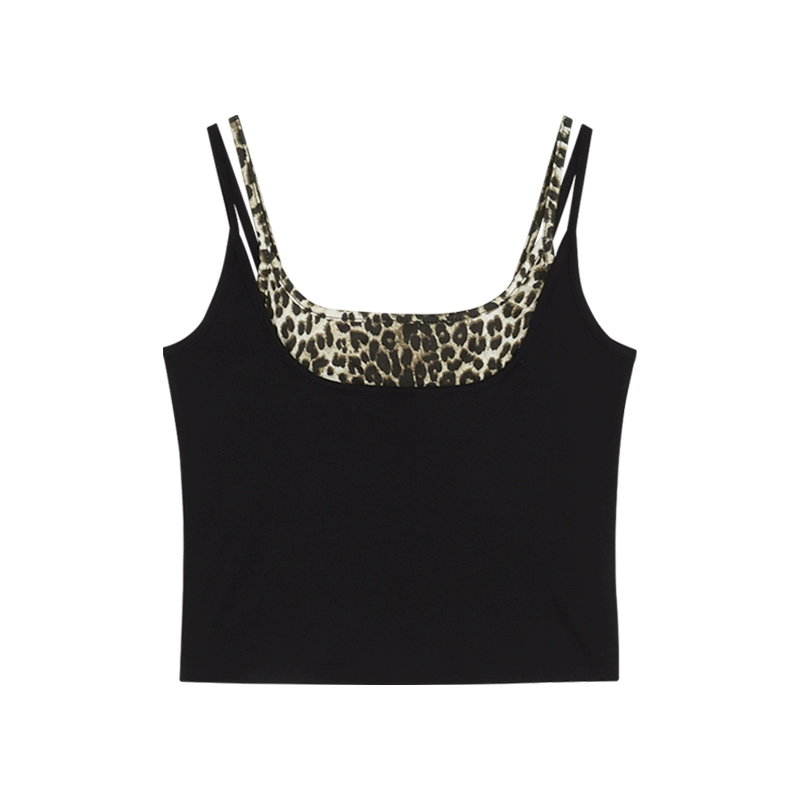Leopard print hottie slim-fitting black navel-baring fake two-piece