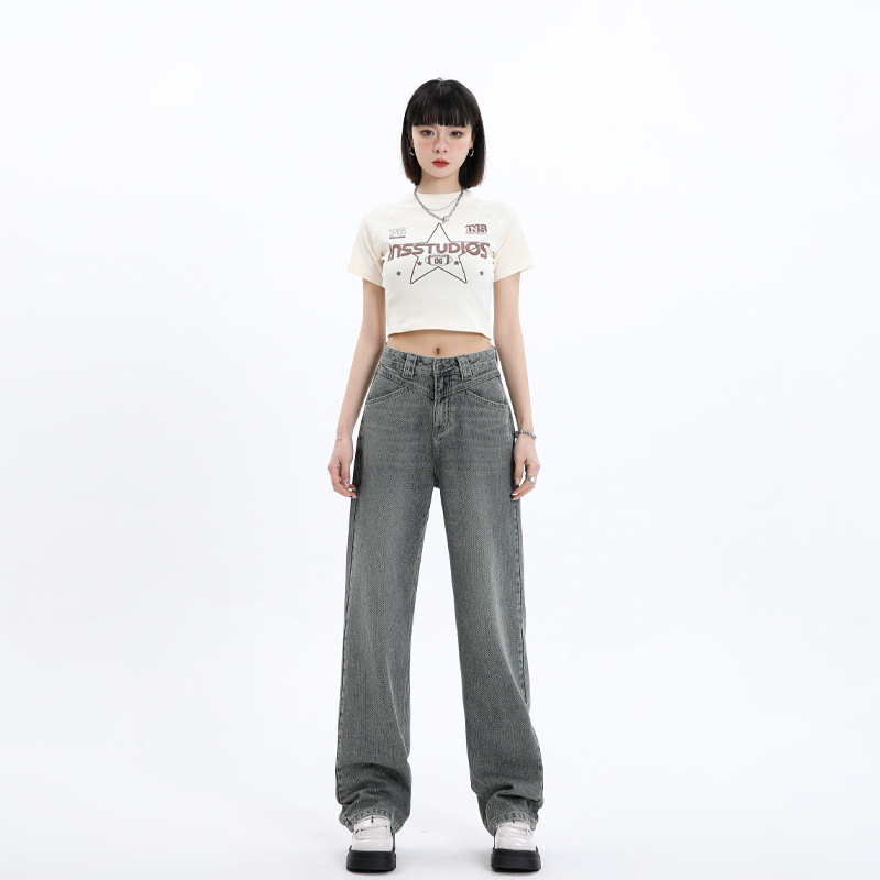 Star Pattern Jacquard Wide Leg Jeans Women’s 2024 Summer New High Waist Loose Dosing Slimming Straight Pants