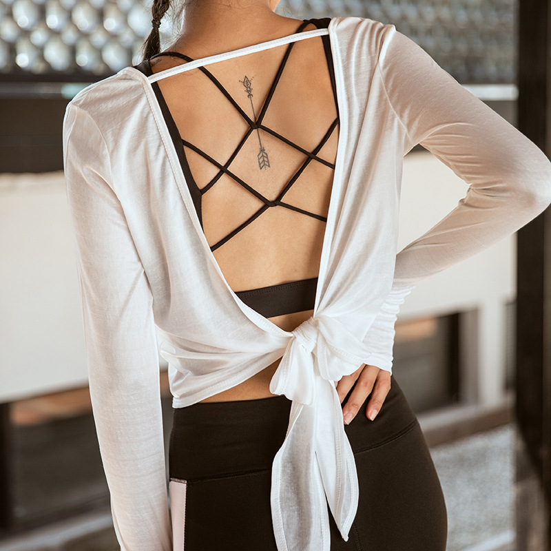 Cross-border New Open Back Tie-up Yoga Suit Women’s Long-sleeved Running Yoga Top Slim-fit Beauty Back Long-sleeved T-shirt