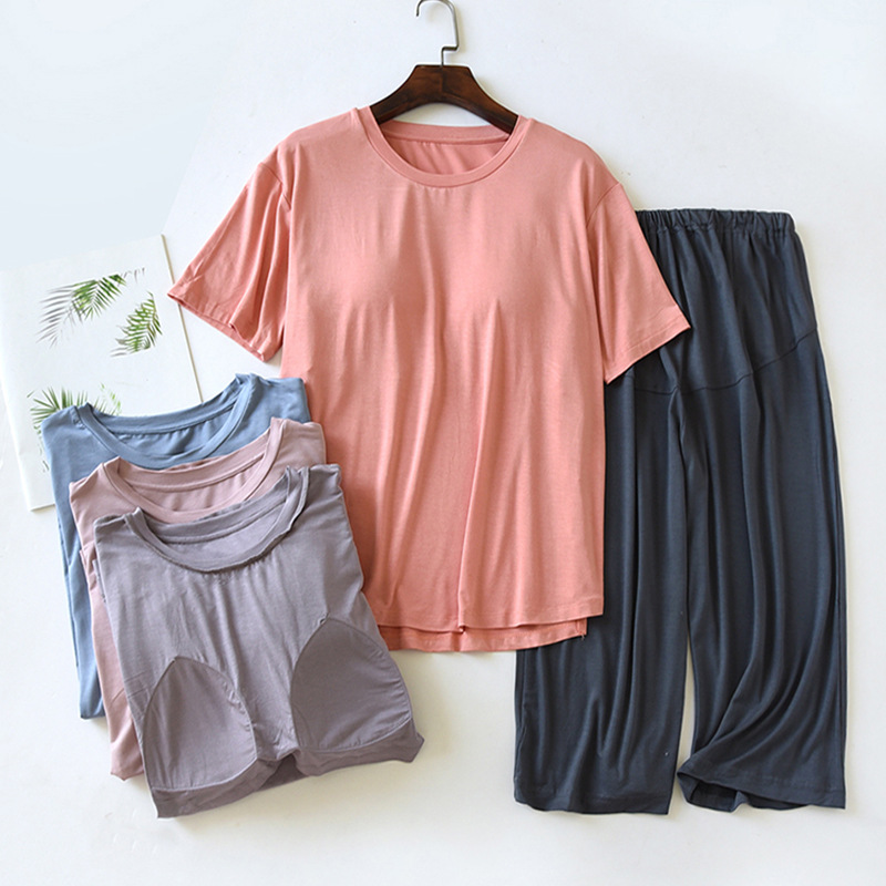 Modal Short-sleeved Cropped Pants with Chest Pad Summer Adjustable Abdominal Pants Postpartum Lactation Pregnant Women’s Suit
