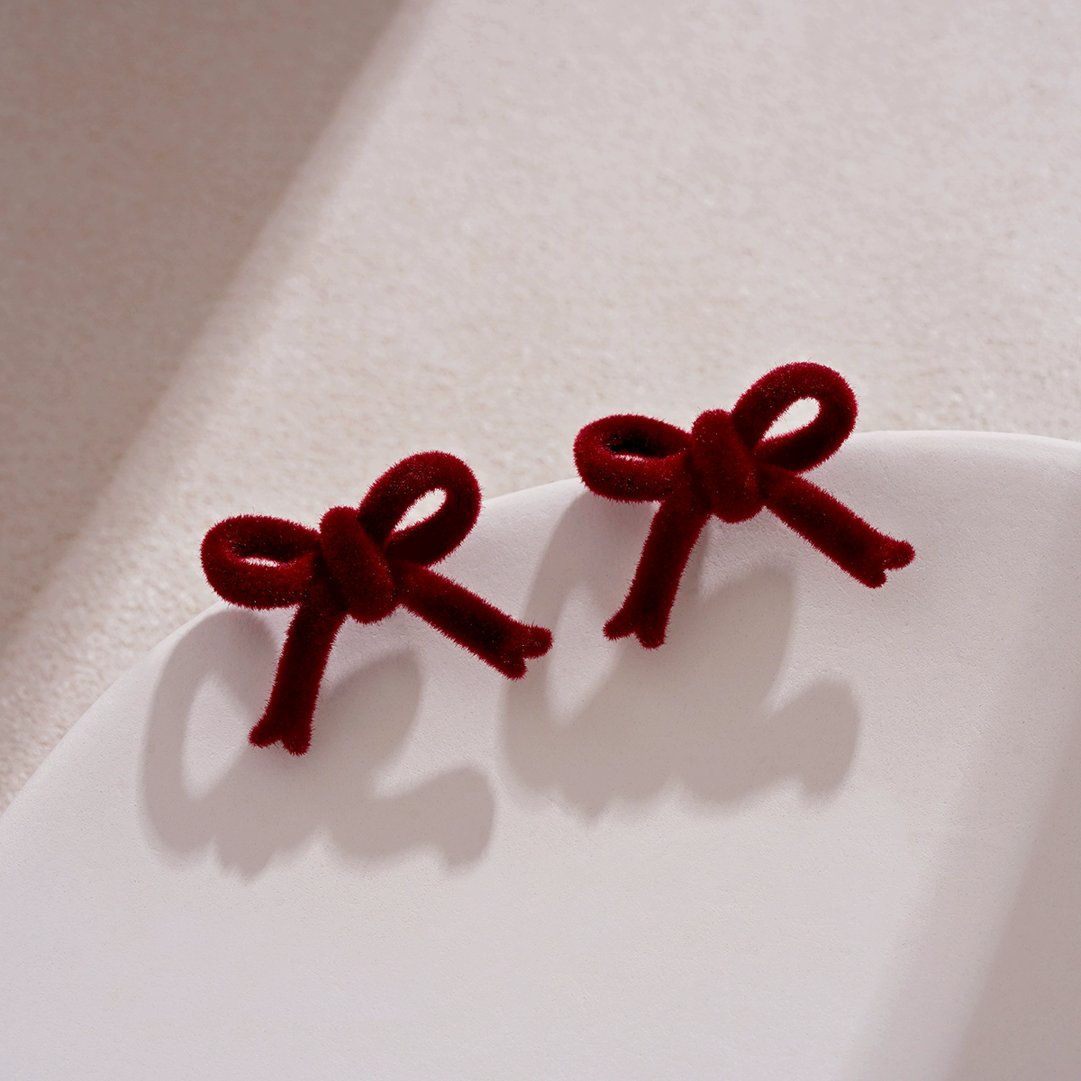 Burgundy velvet bow earrings, high-end retro temperament earrings, antique design earrings, new trendy earrings