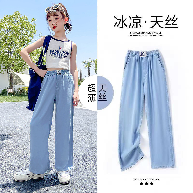 Girls’ Tencel Pants Thin Summer 2024 New Loose Children’s Summer Casual Pants Girls’ Mosquito-proof Pants Summer