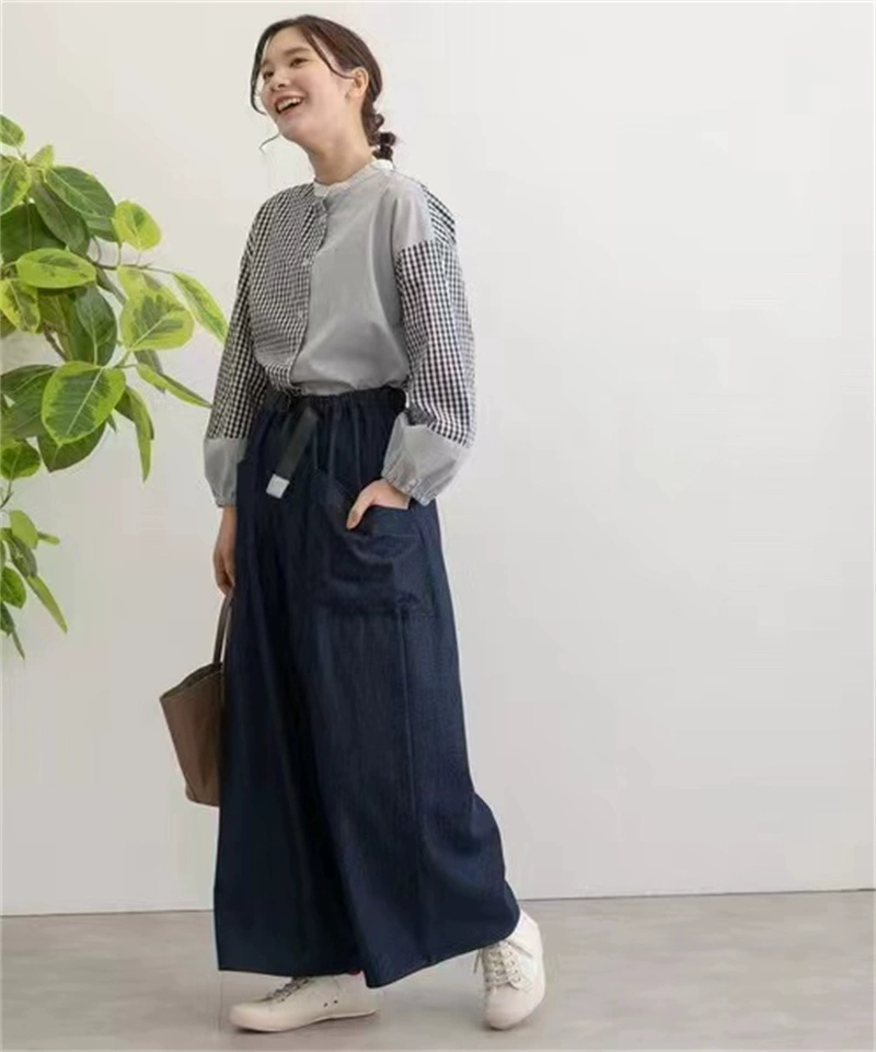 Official website snap-on jeans culottes for women 2024 spring new elastic high-waisted cotton wide-leg pants trousers overalls