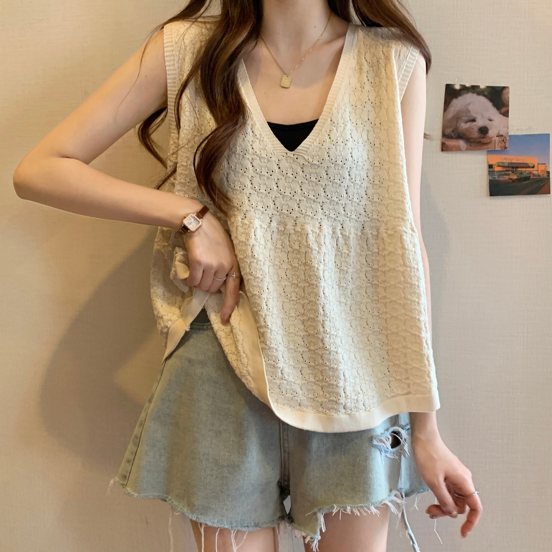 2024 Foreign Trade Summer New Women’s V-Neck Sleeveless Vest Doll Shirt Short Wide Slim Small Vest Top