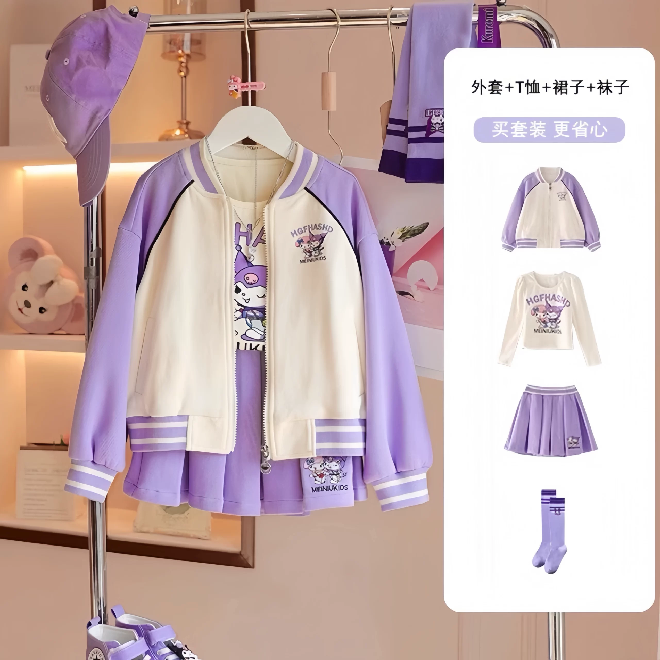 Children’s Spring and Autumn new boys’ lapel long-sleeved girls’ pajamas suit loose girls’ older children’s air conditioning clothes home wear