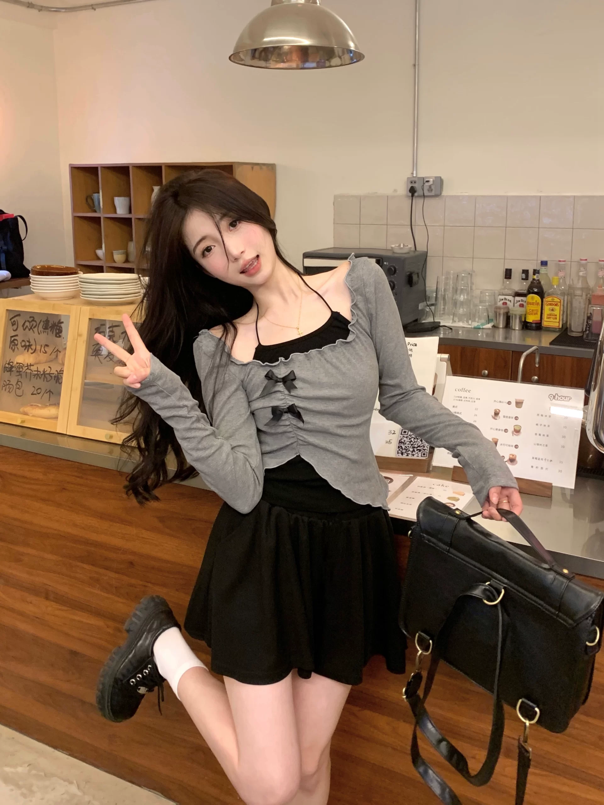 Women’s early spring suspender skirt two-piece set long-sleeved T-shirt