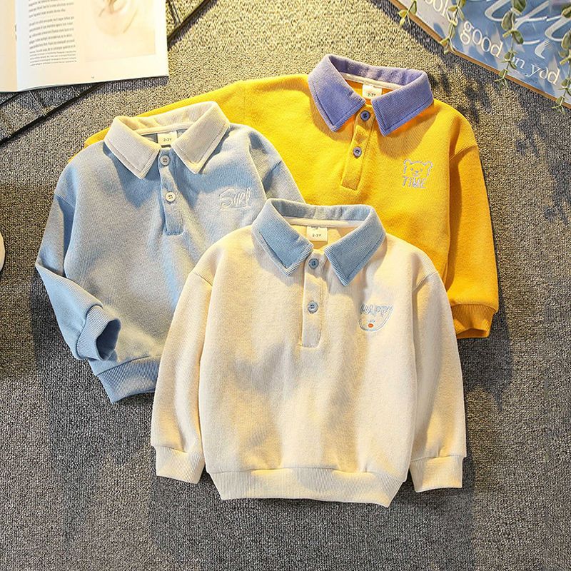 Boys’ Autumn New fleece-lined Children’s Sweater Long Sleeve Base Shirt POLO Shirt Handsome Baby’s Early Autumn Top