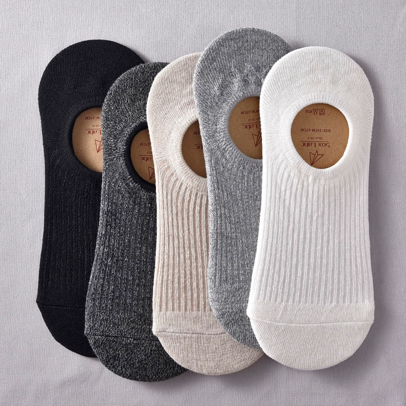 White silicone anti-skid boat socks men’s trendy ins shallow mouth socks spring, autumn and winter students pure cotton semi-invisible socks