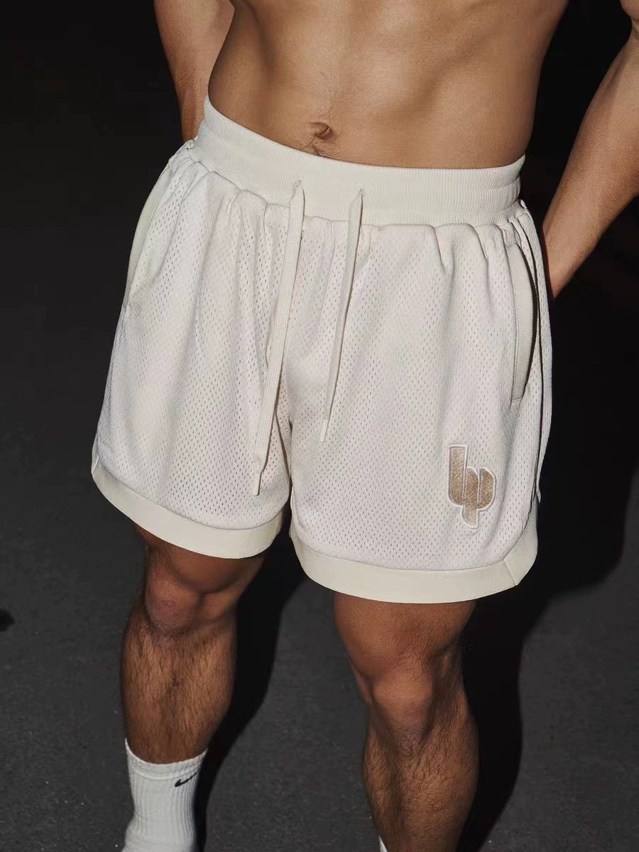 American retro simple summer mesh embroidered shorts American retro double layer heavy loose high street couple sports