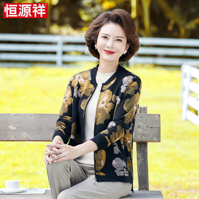 Hengyuanxiang mom autumn coat short 2023 new women’s spring and autumn knitted cardigan jacket top clothes western style