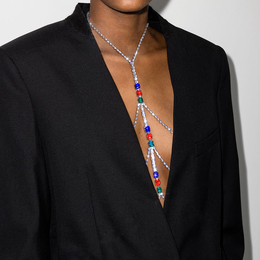 European and American cross-border hot selling jewelry personalized mixed color full rhinestone chest Chain Women’s sexy body Chain Chain 05
