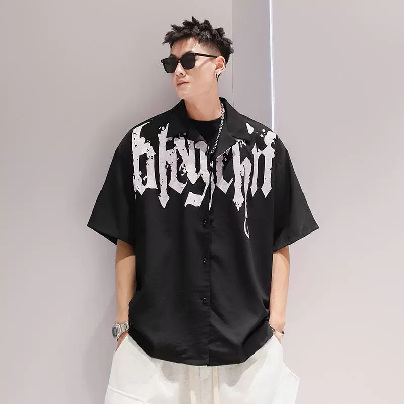 Extra large size 300 pounds lapel short-sleeved casual shirt