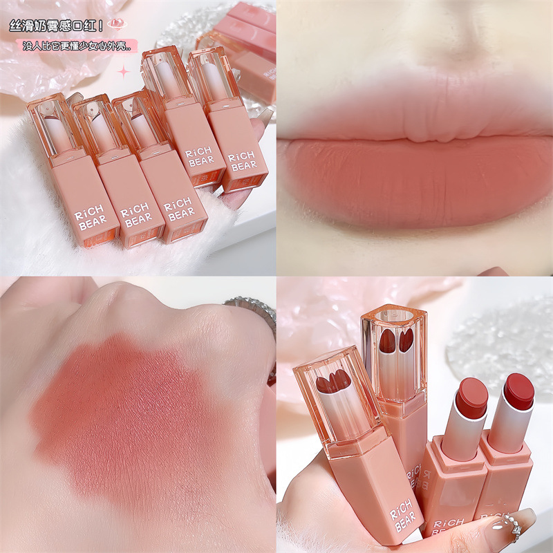 RichBear light velvet matte lipstick mud not easy to touch cup milk coffee fog surface white high color value lip glaze cross-border