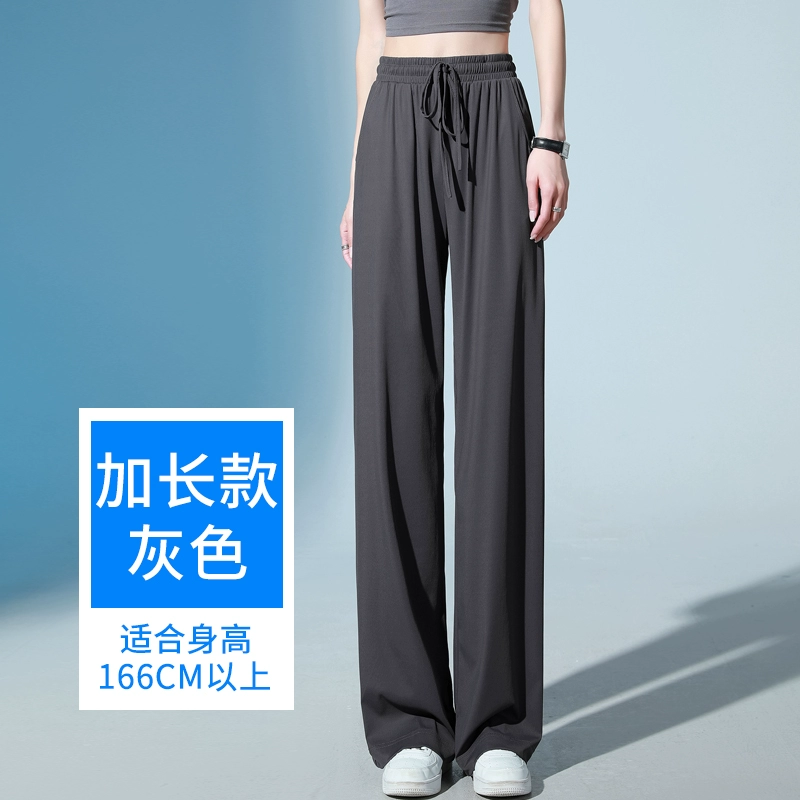 Bing silk thin, cool high waist, vertical, straight -legged pants