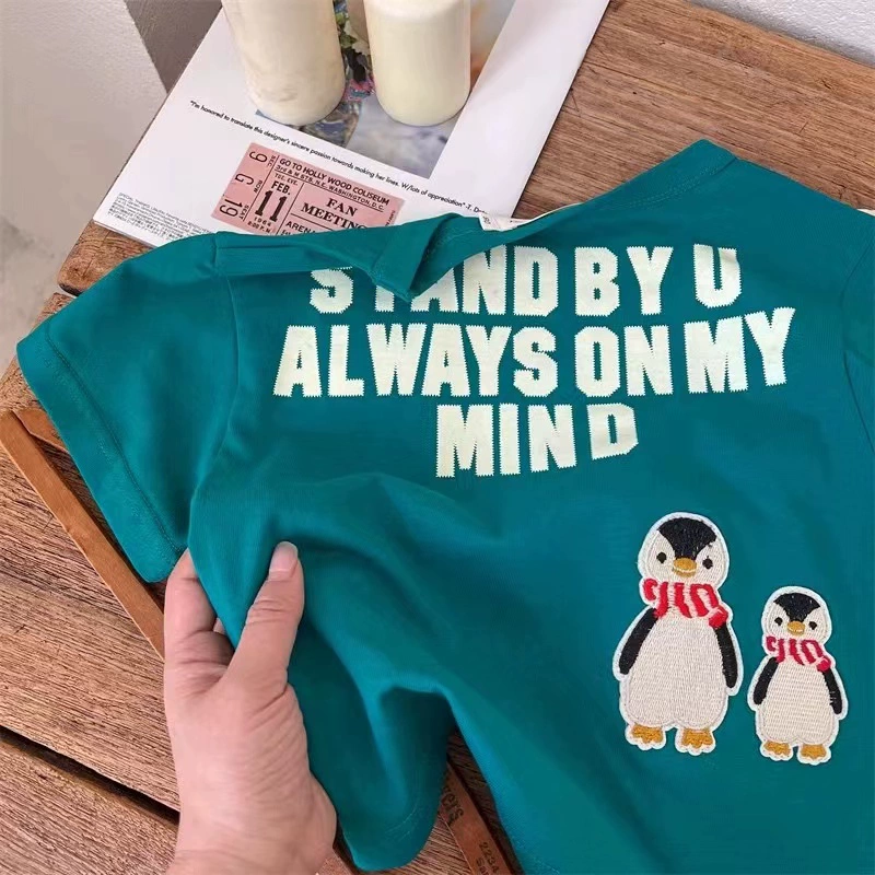 Children’s clothing cartoon embroidery summer half -sleeved children’s T -shirt