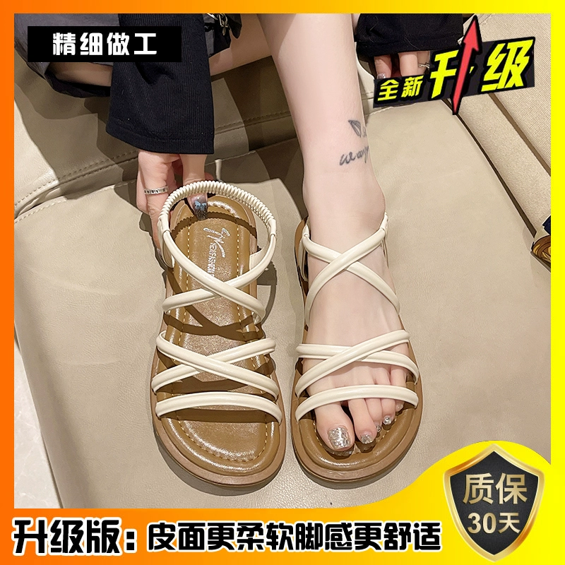 Internet celebrity flat-soled 2024 summer maternity Roman sandals