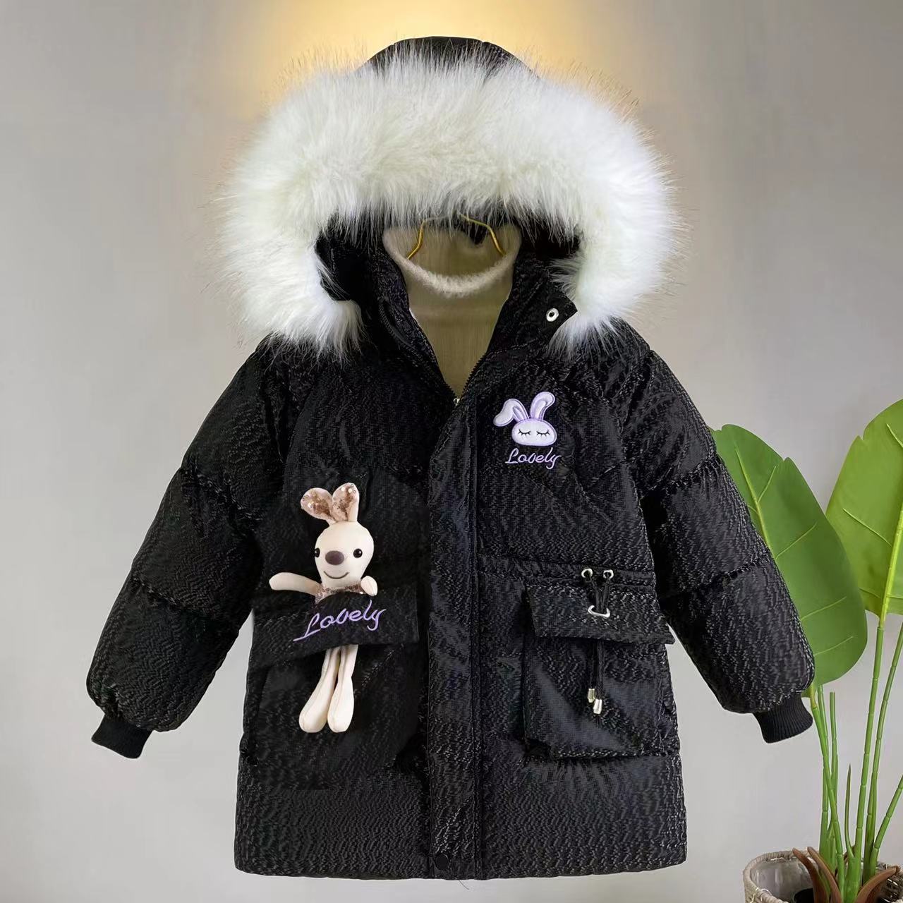 Girls’ cotton-padded jacket 2024 new fleece-lined foreign-style cotton-padded jacket for large children and girls long thickened down cotton-padded jacket foreign trade