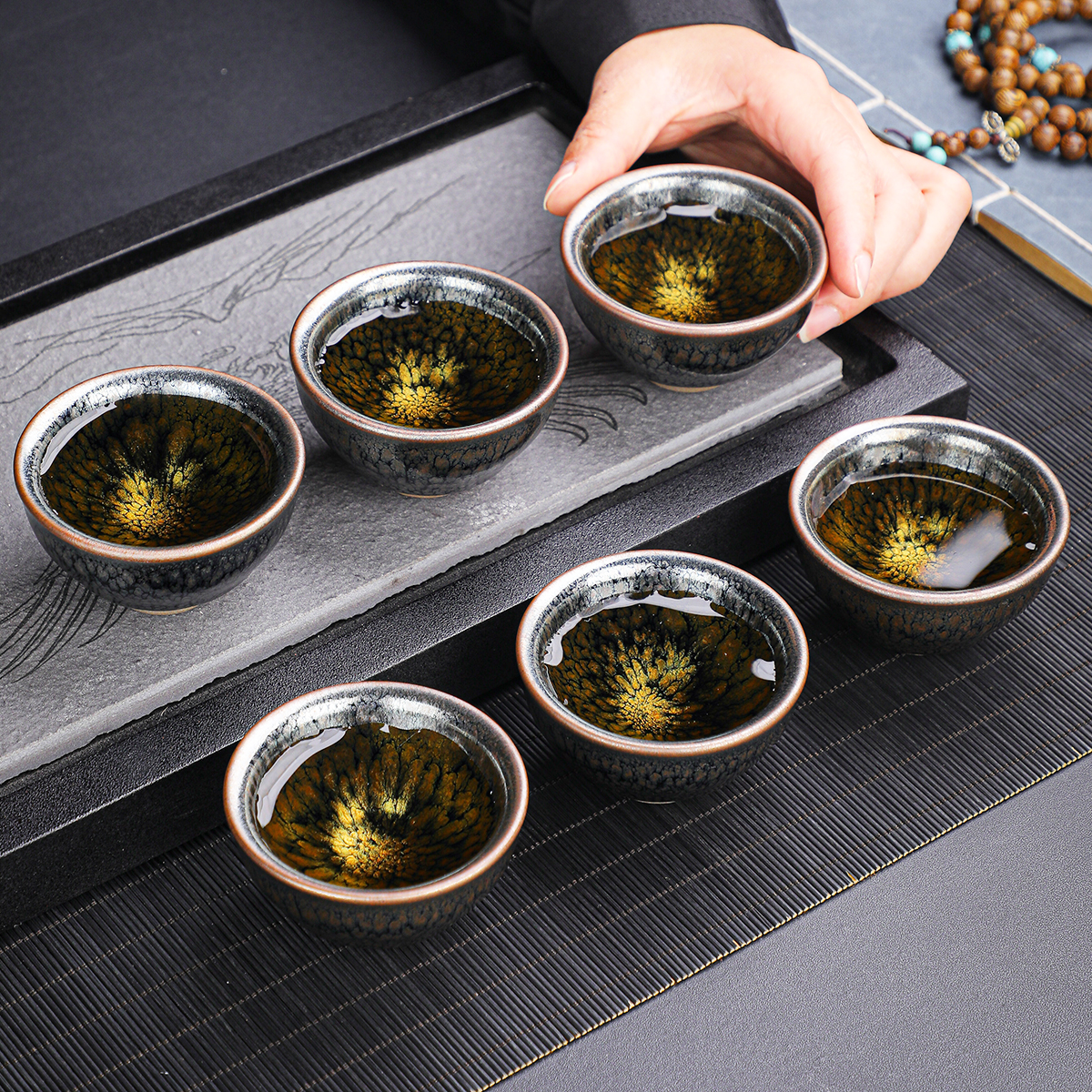 O1 small caliber Jianzhan tea cup 6 tea cups kung fu tea set Tea Bowl suit ceramic tea cup Master Cup gift