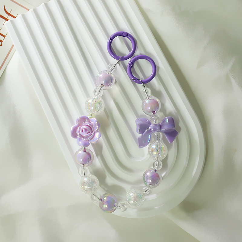Simple Summer New Camellia Beaded Chain Fresh Bow Mobile Phone Chain Colored Beaded Bag Pendant Girlfriend
