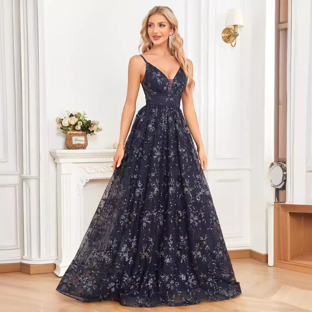 GA2305 European and American Deep V-neck Sexy Floor Dress Elegant Strap Backless Banquet Party Party dress