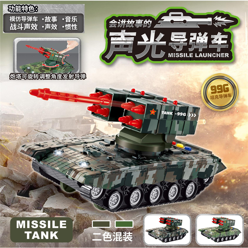 Play house simulation military tank car 5869 lights and sound effects storytelling inertial missile car combat toy car