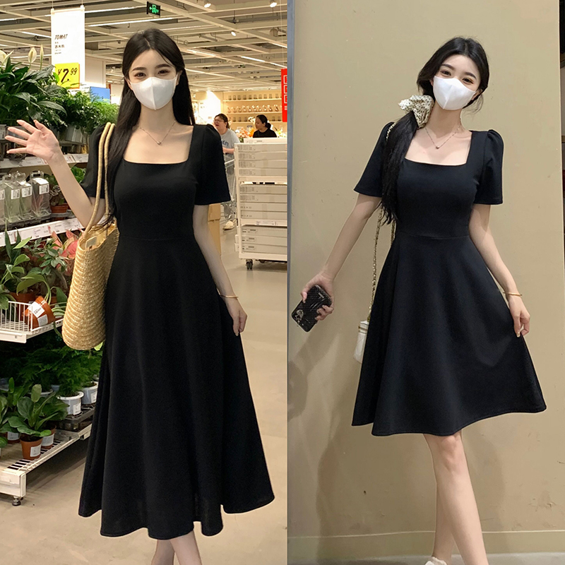 Gentle retro summer little black dress for fat girls to cover their flesh and make them look slimmer