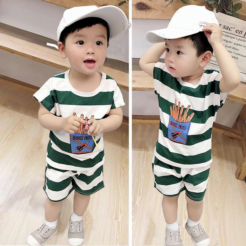 Baby’s Summer Suit 1-2-3 Years Old 4 Boys and Girls Children’s Clothing Western Style Striped Short Sleeve Shorts Two-piece Summer Clothes