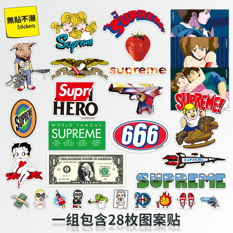 28 pieces of European and American trendy brand personality luggage large stickers computer skateboard motorcycle refrigerator suitcase stickers waterproof
