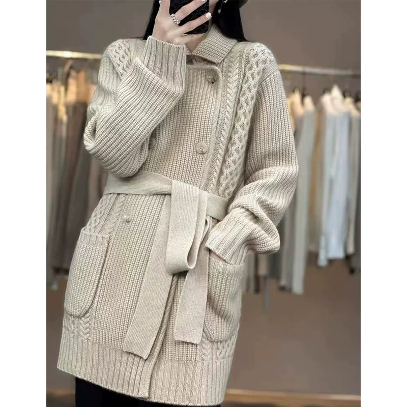 Cashmere autumn lazy wind sweater jacket knitted cardigan