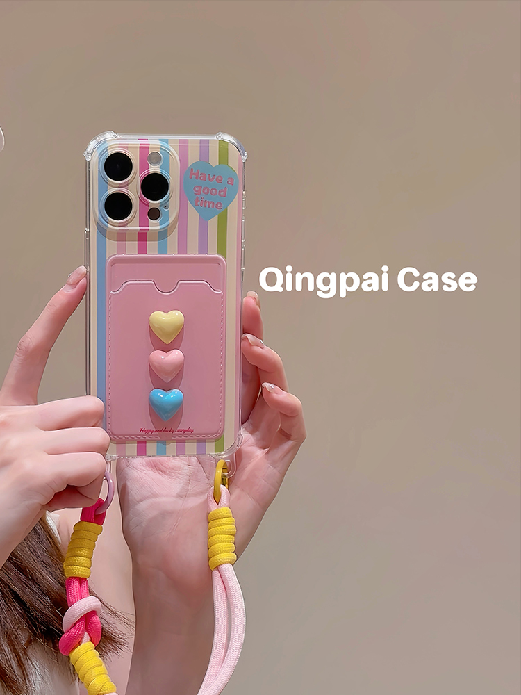 Light girl three-dimensional color love card holder lanyard suitable for Apple 15promax mobile phone case iphone13 new 14pro female model 12 insertable card sweet girl Japanese and Korean soft cute all-inclusive soft case
