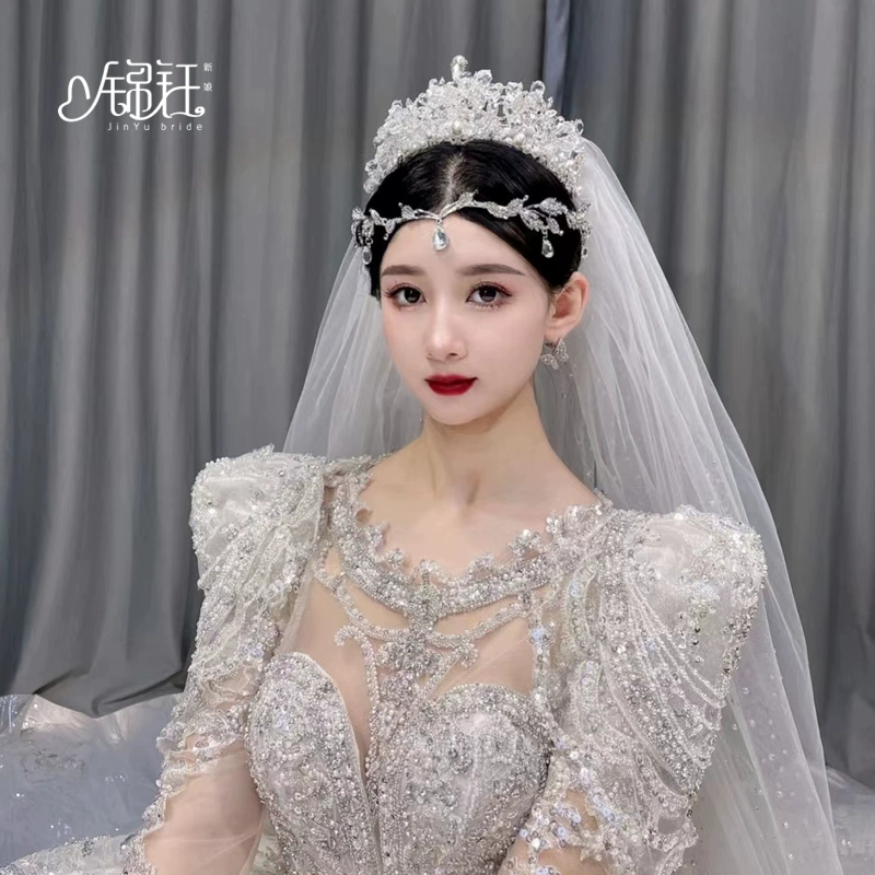 Jinyu Korean Crystal Pearl temperament Sweet wedding dress shape Crown Aesthetic ornaments wearing white gauze jewelry